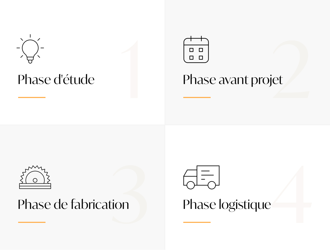 From the designer's first draft to the complete installation of your premises, we put at your disposal our experience, our tools, our resources and our creativity to listen to your every need.